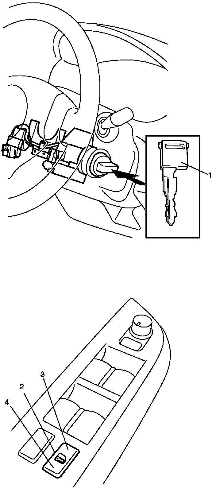 a. First push manual door lock switch (2) toward lock side (3) and then push it toward unlock side (4).