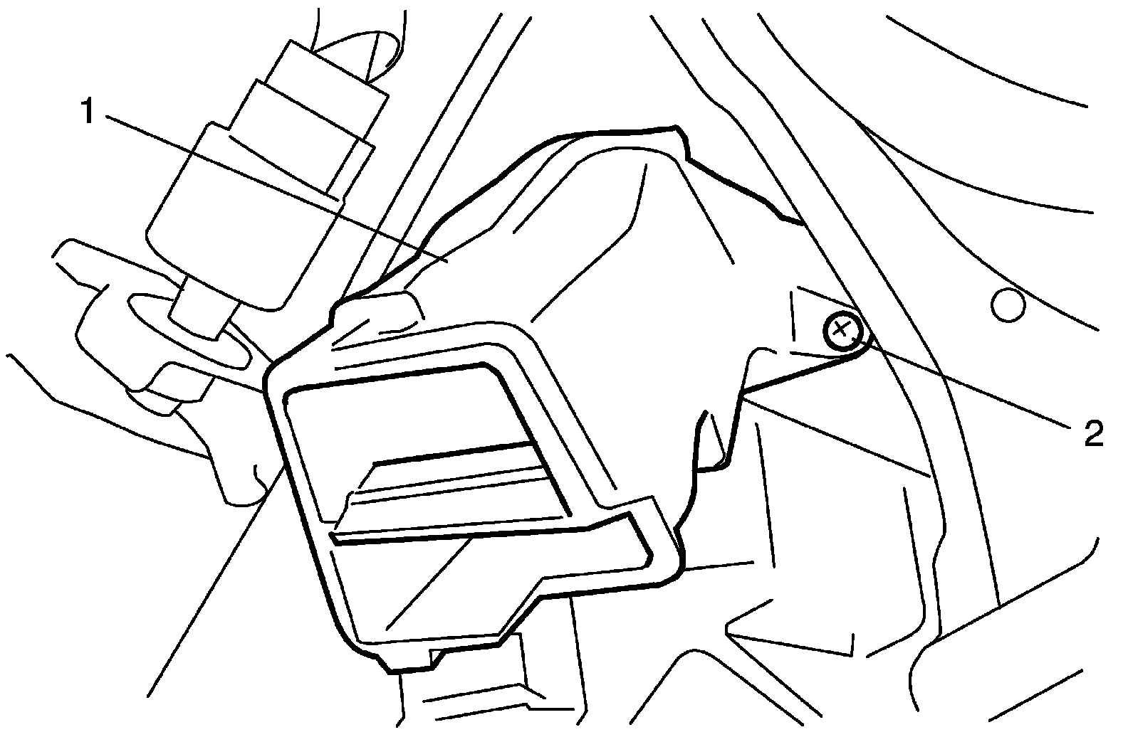 4. Remove driver side foot duct (1) from HVAC unit by removing screw (2).
