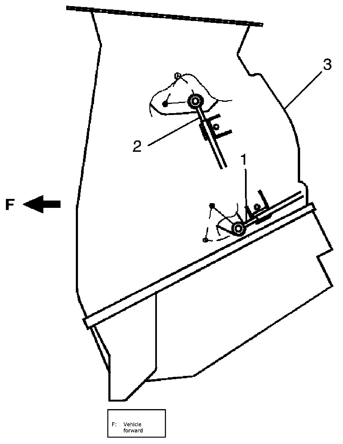 5. Disconnect temperature control cable (1) and air flow control cable (2) from HVAC unit (3).