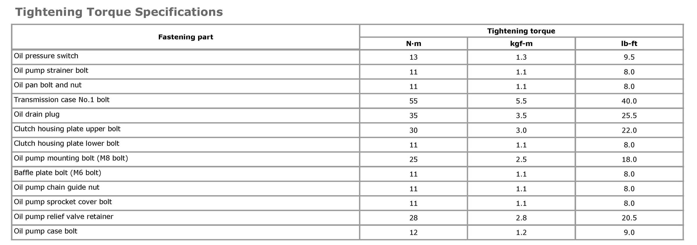 For the tightening torque of fastener not specified in this section, refer to Fasteners Information.