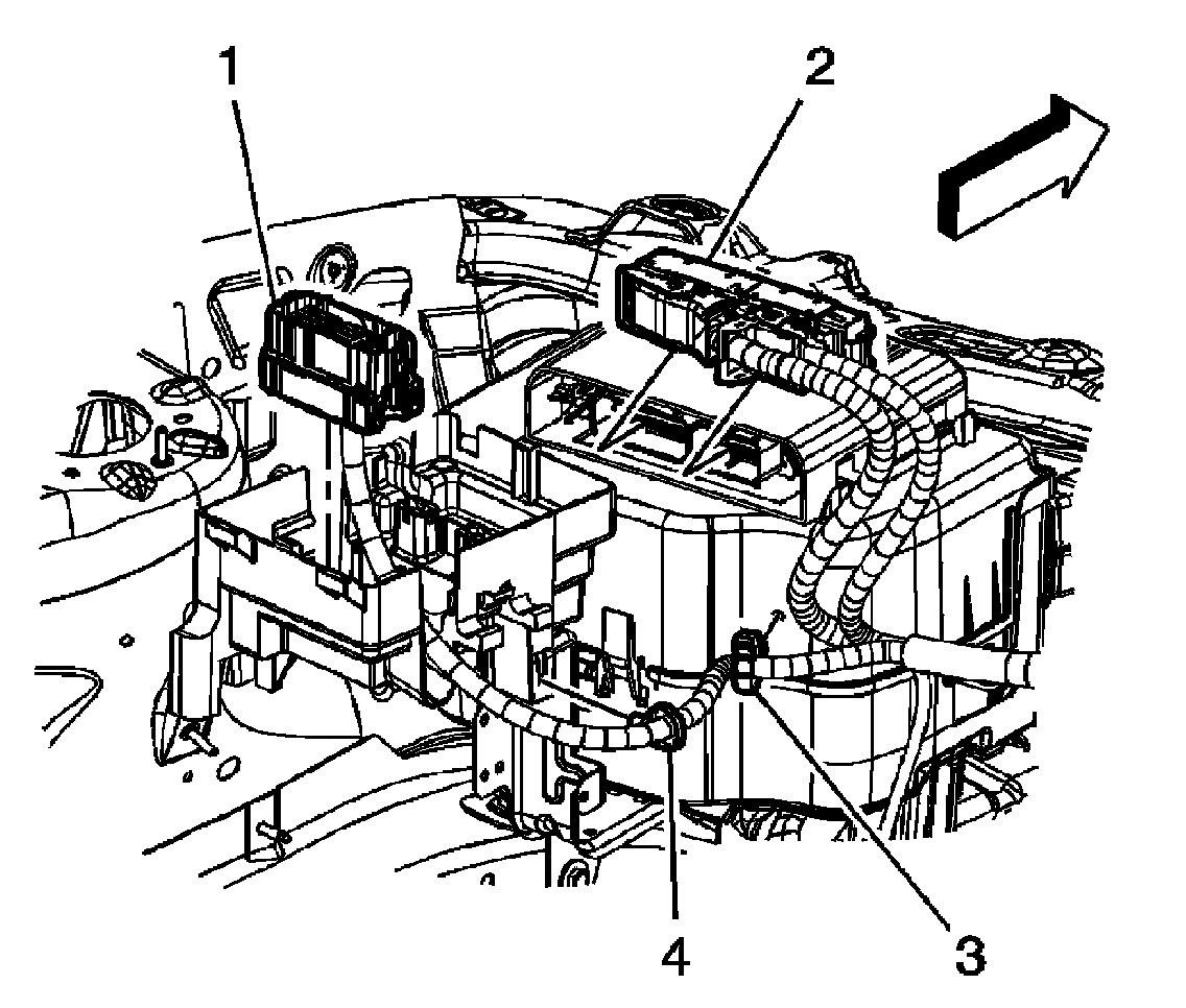 6. Disengage the clips (1) on the ECM retainer from the ECM, and slide the ECM out of the retainer.