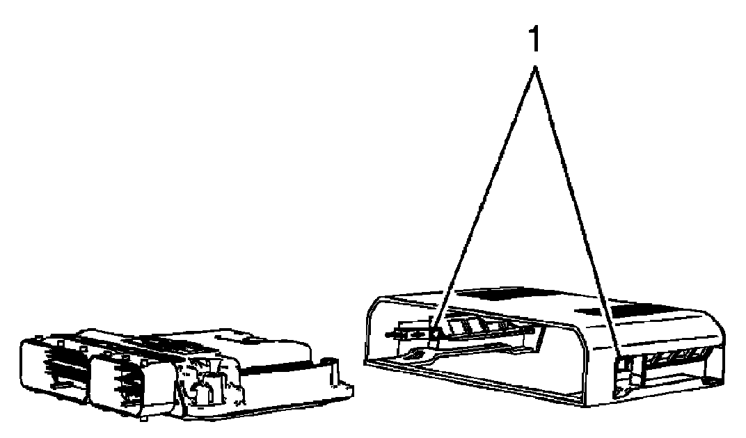 1. Slide the ECM into the retainer until the clips (1) engage the ECM.