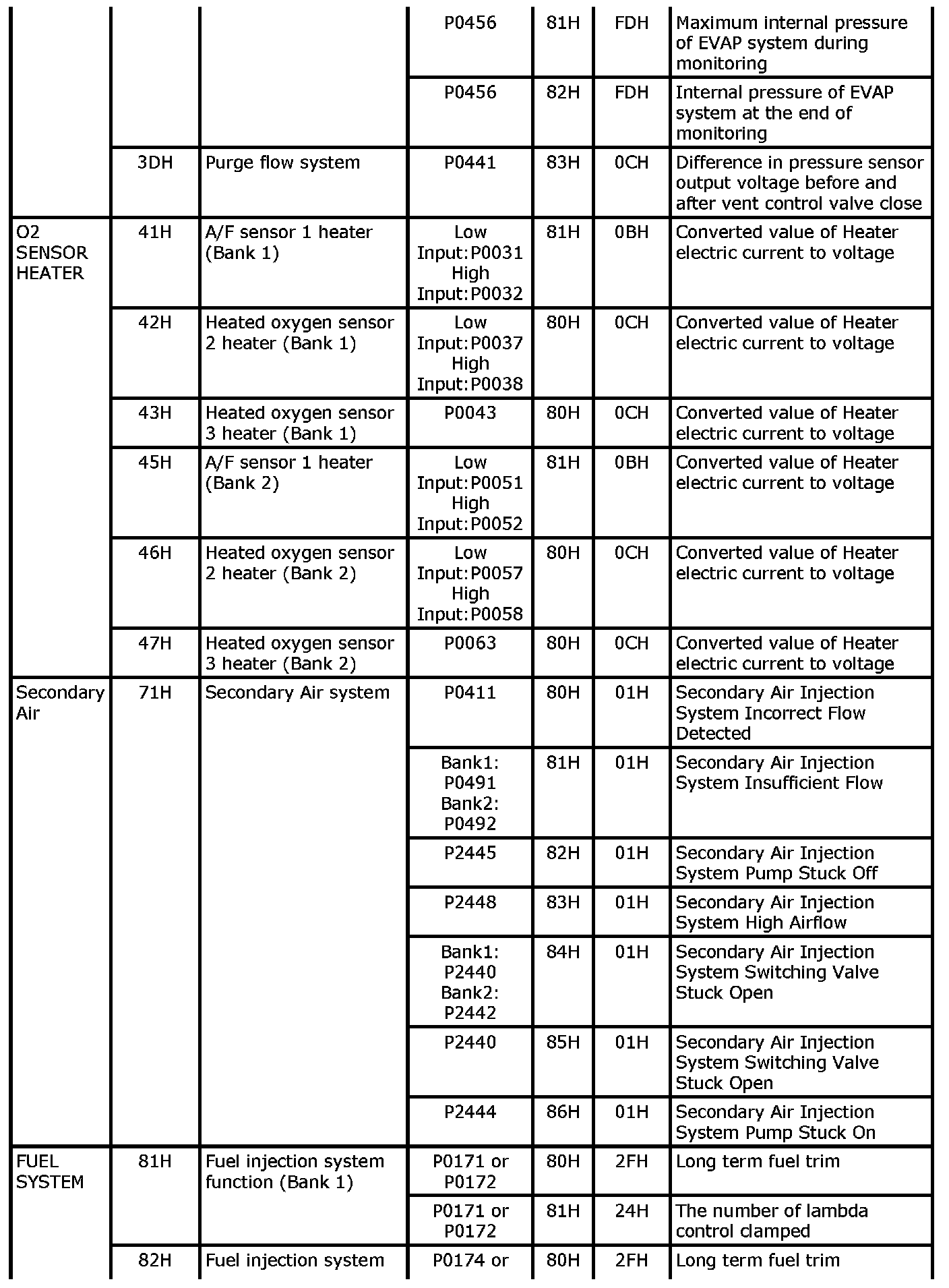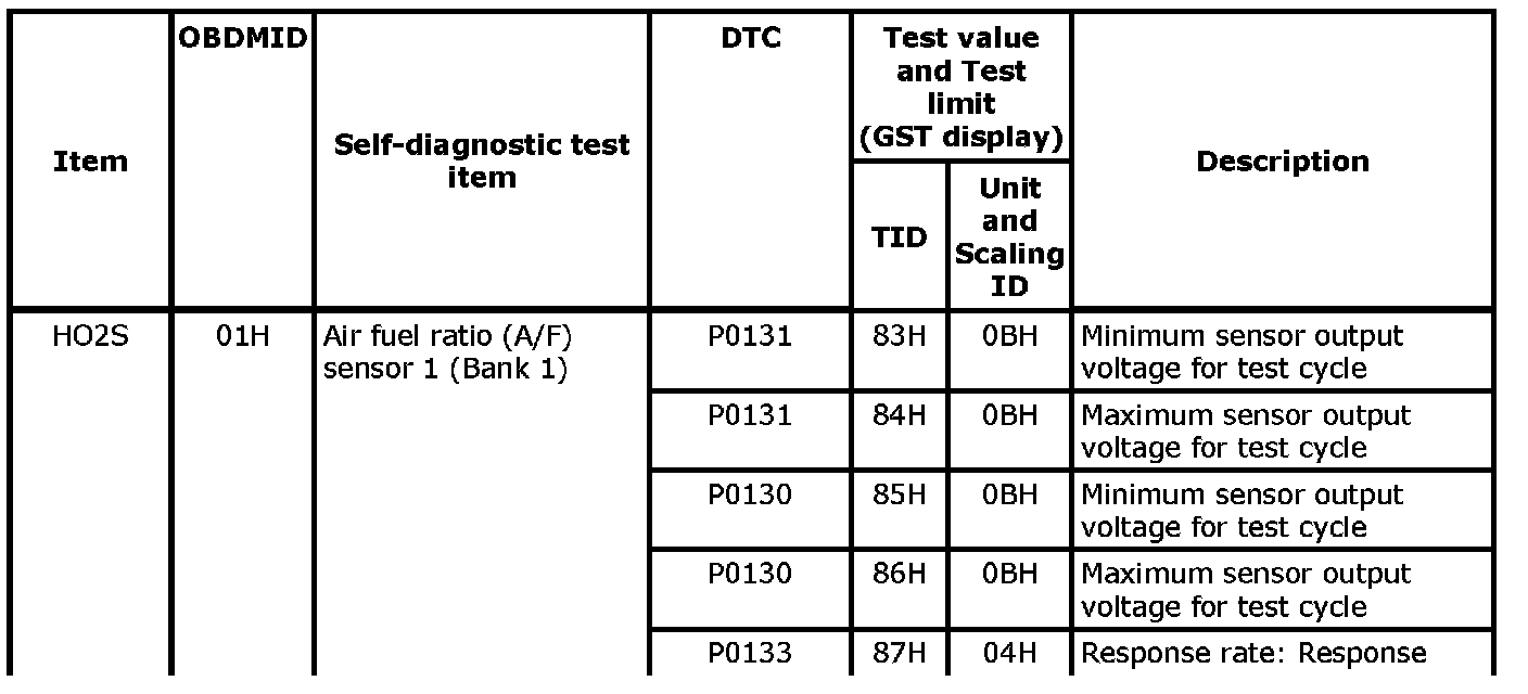 These data (test value and test limit) are specified by On Board Monitor ID (OBDMID), Test ID (TID), Unit and Scaling ID and can be displayed on the GST screen.