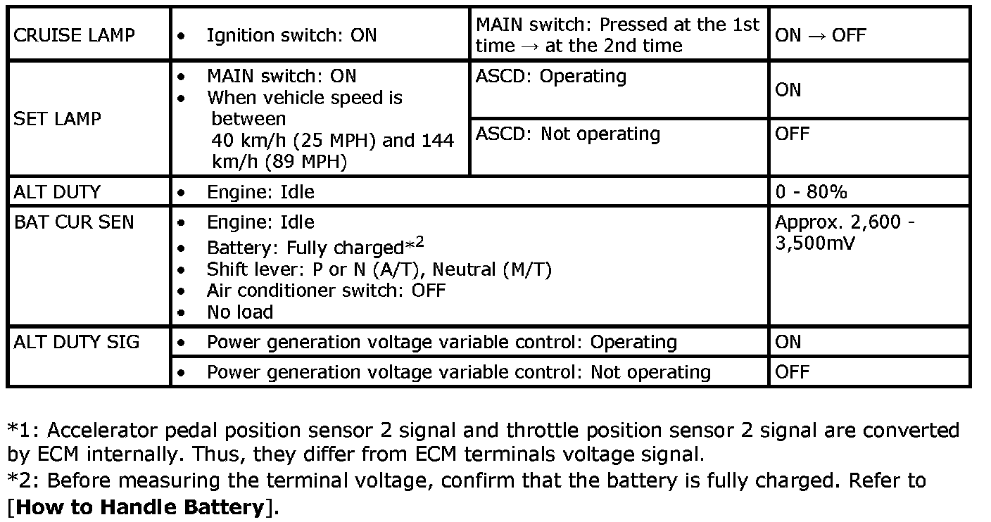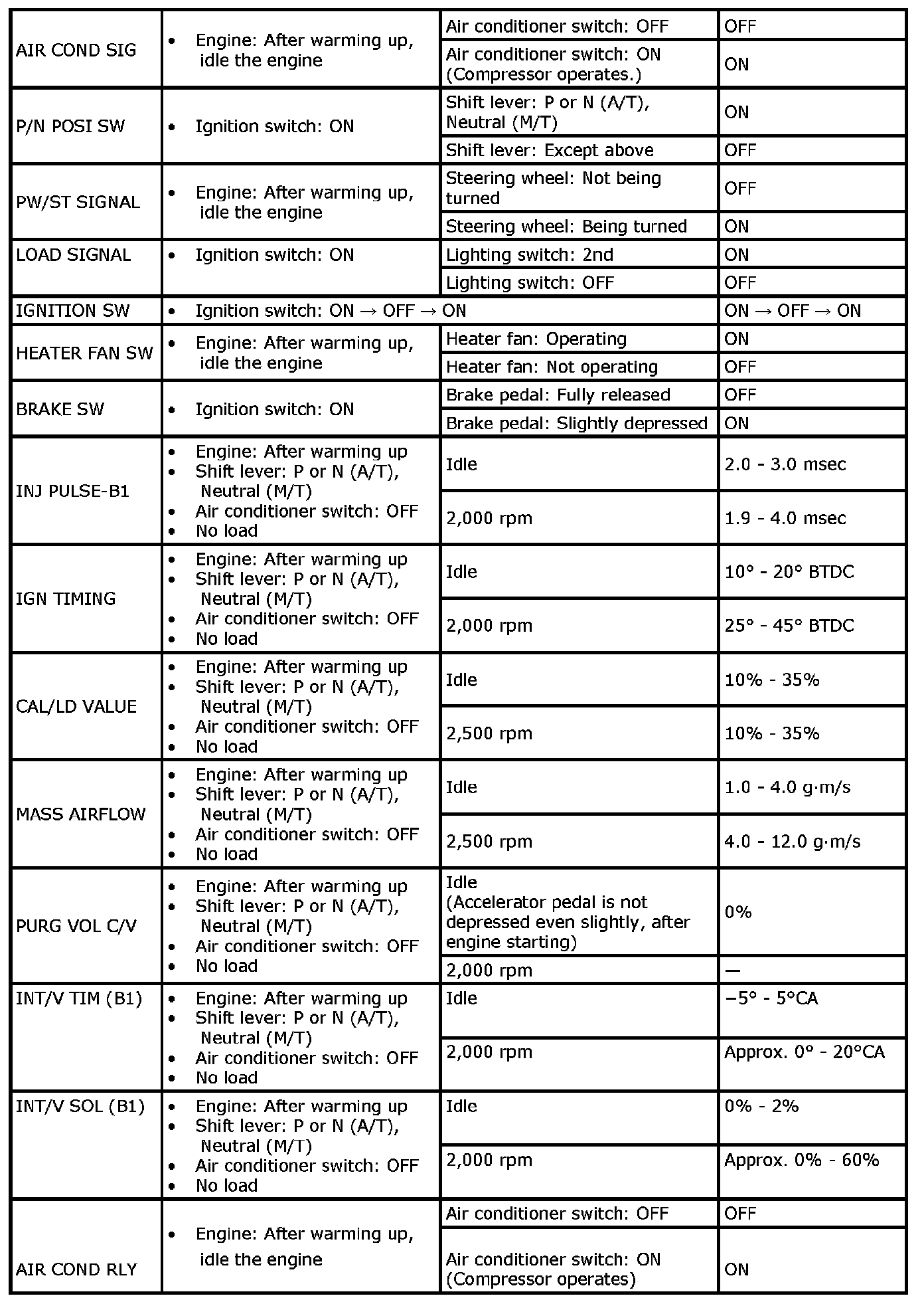 - Specification data are output/input values which are detected or supplied by the ECM at the connector.