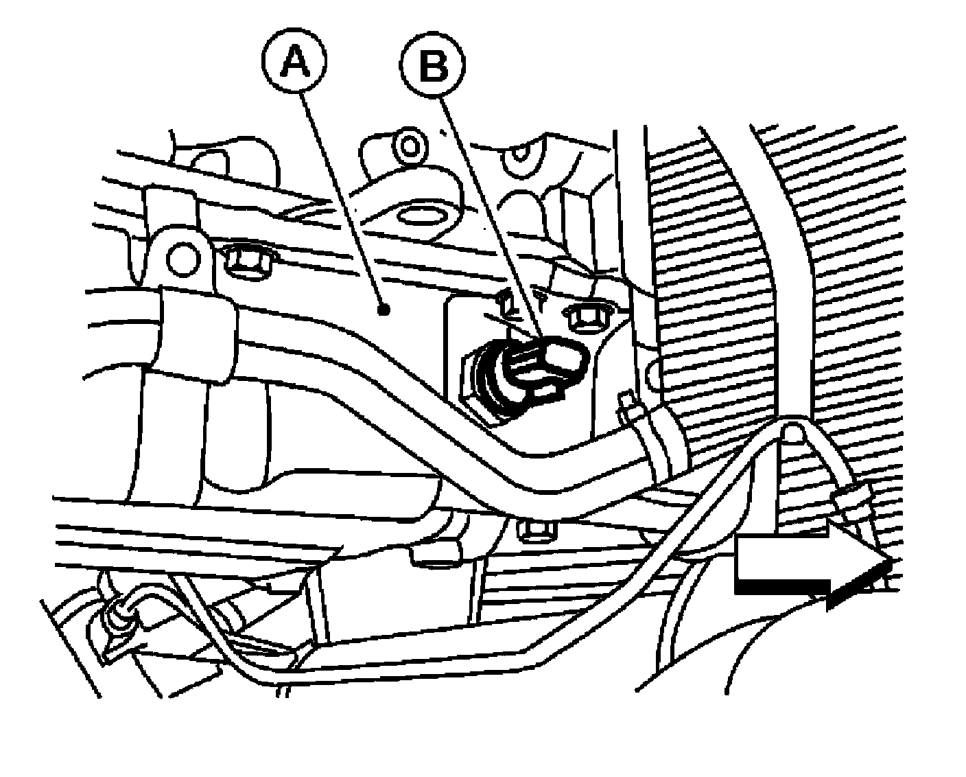 4) Remove the oil pressure switch (B).