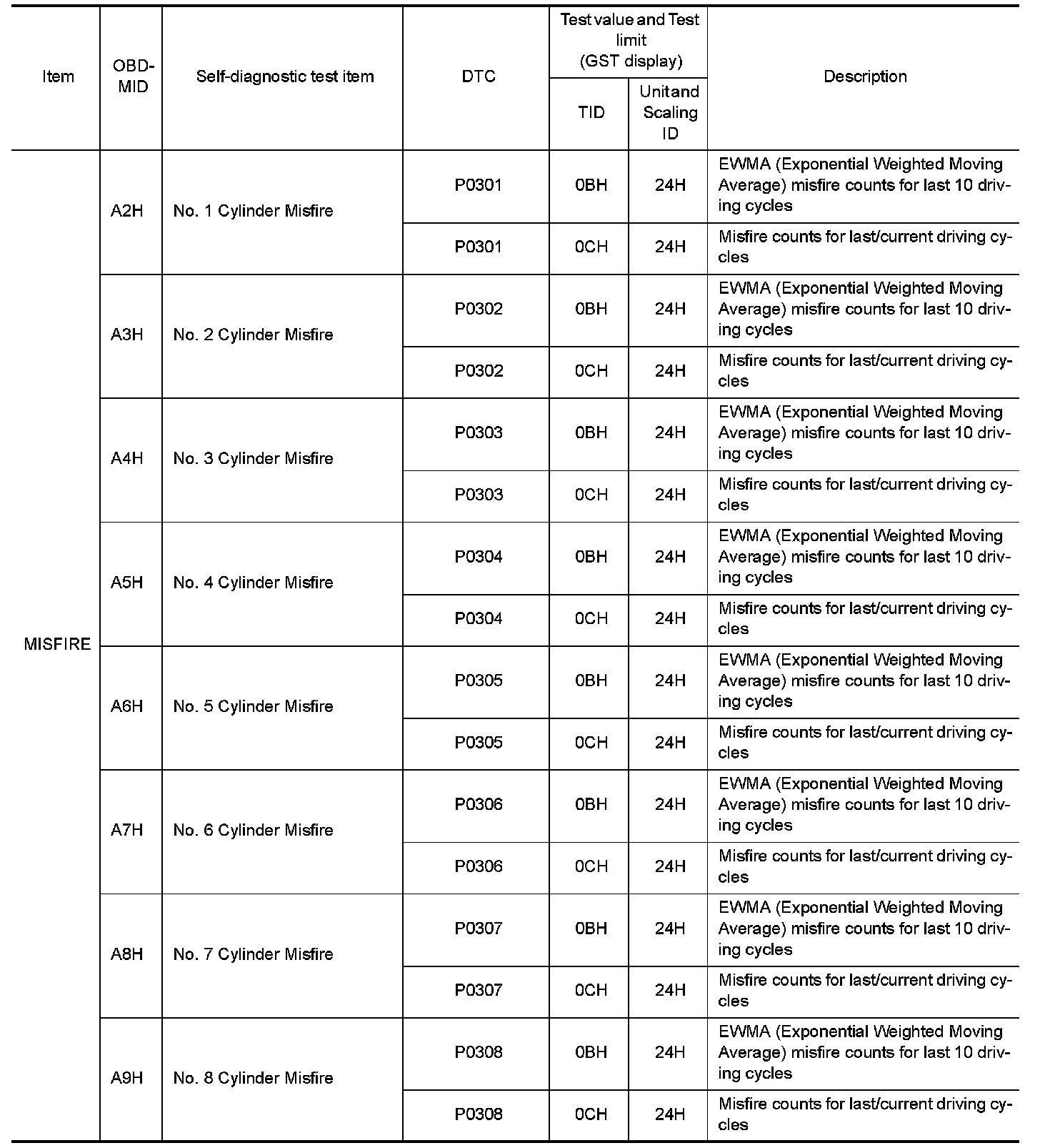 These data (test value and test limit) are specified by On Board Monitor ID(OBDMID), Test ID (TID), Unit and