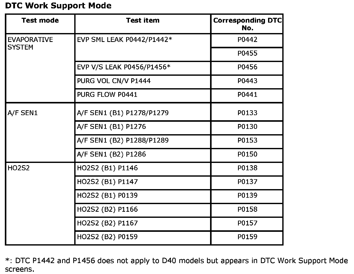 DTC Work Support Mode