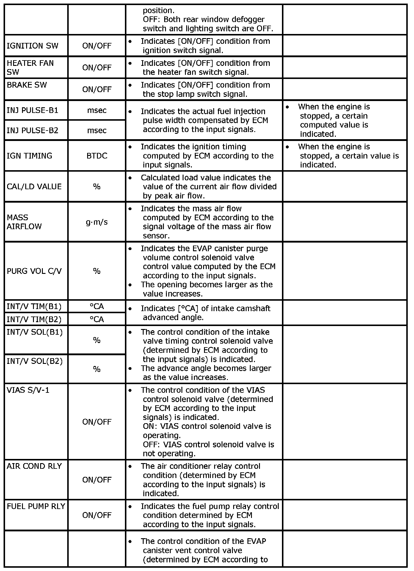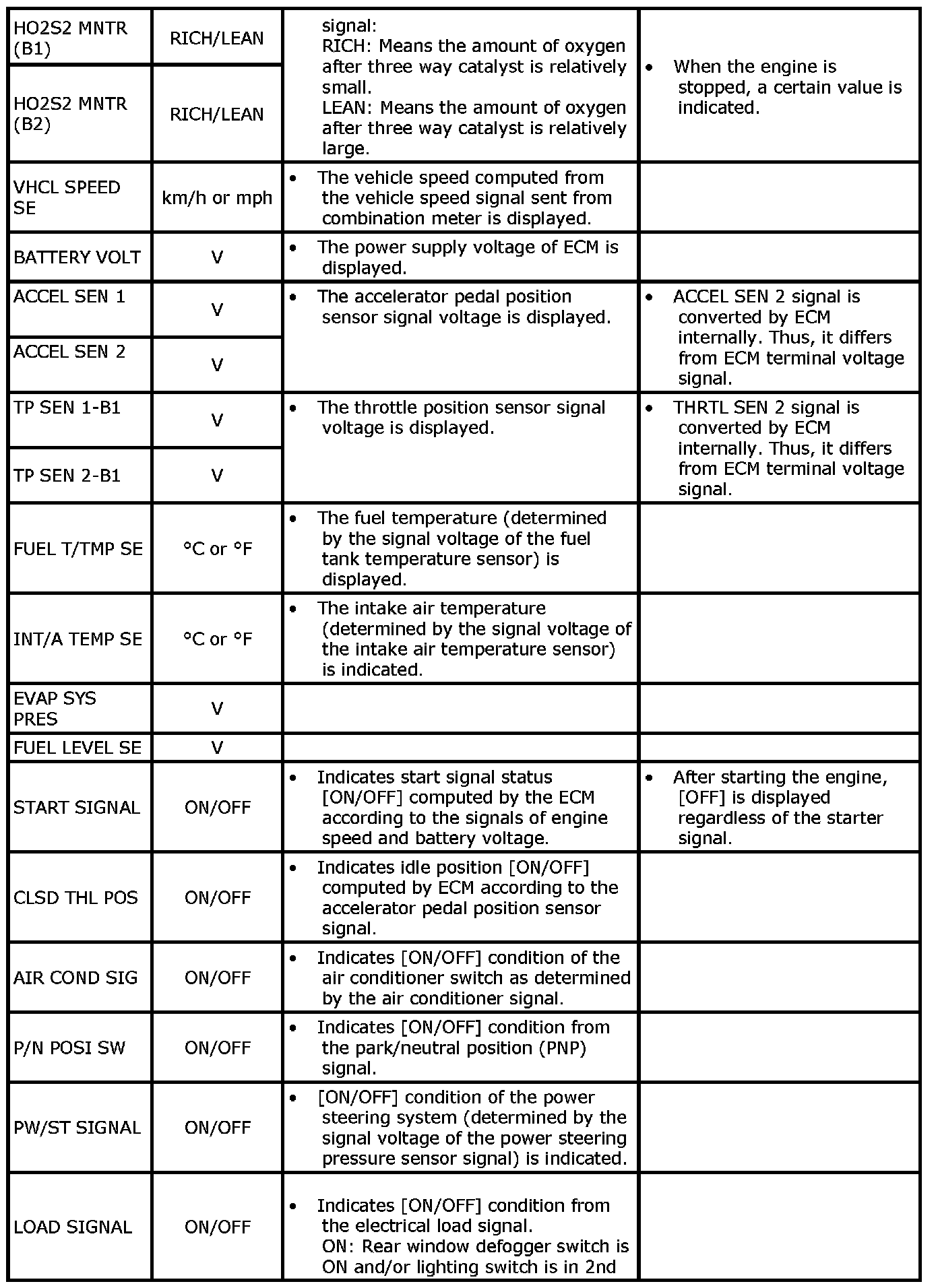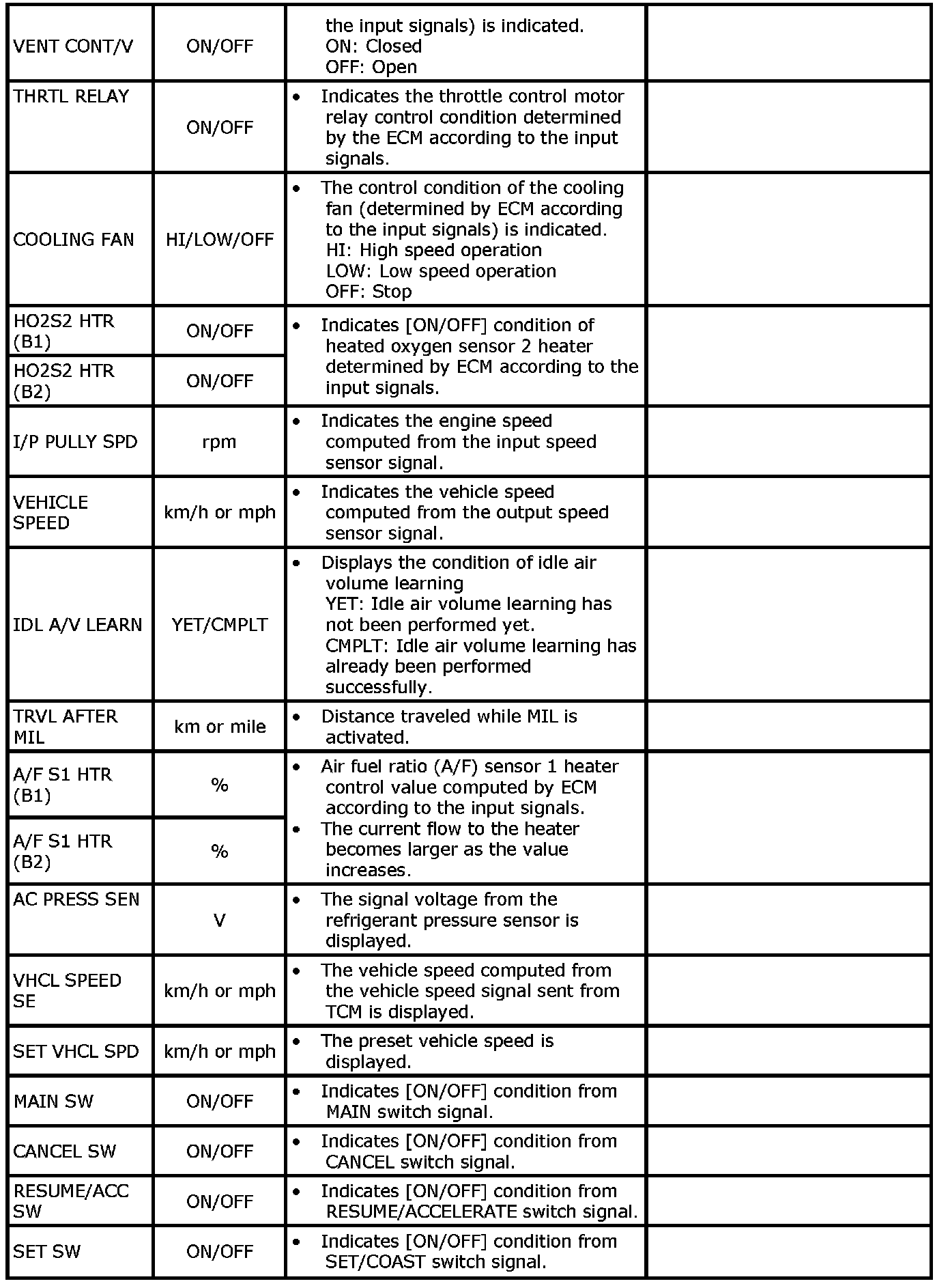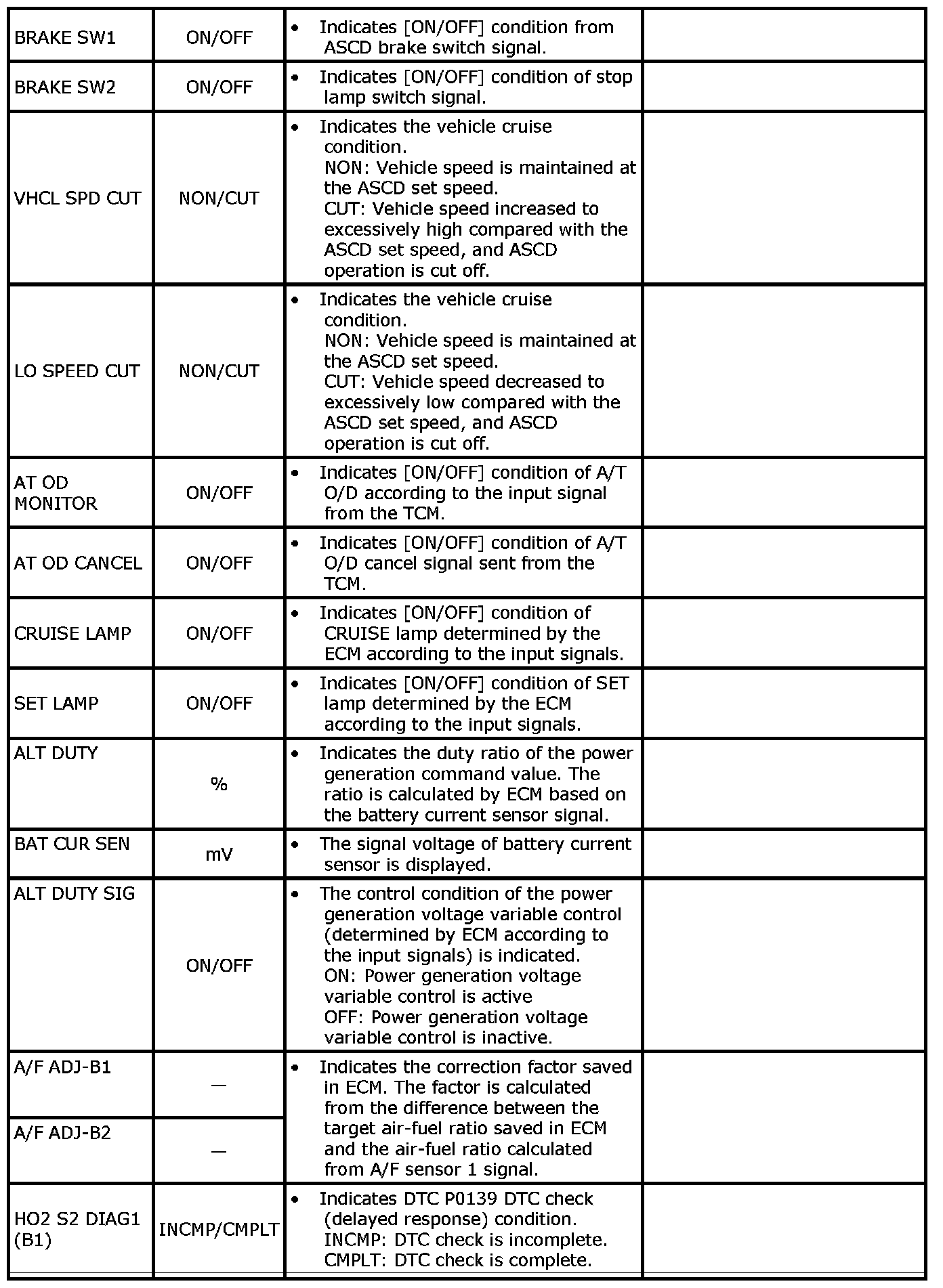Any monitored item that does not match the vehicle being diagnosed is deleted from the display automatically.
