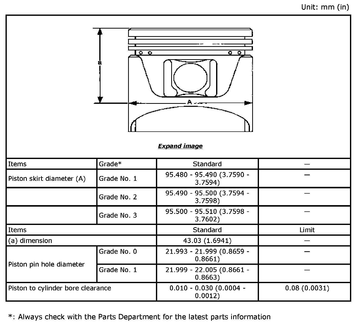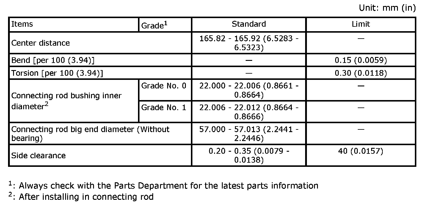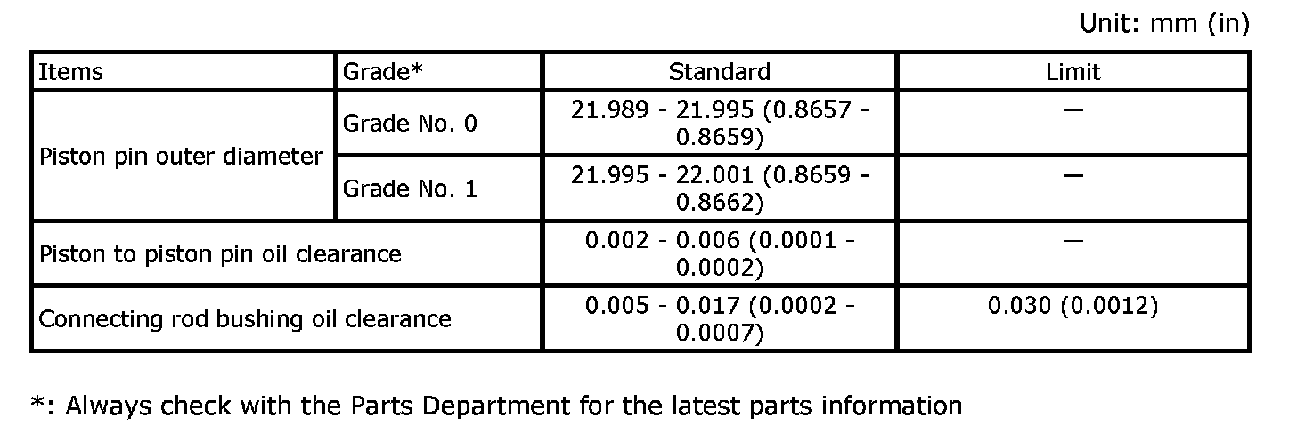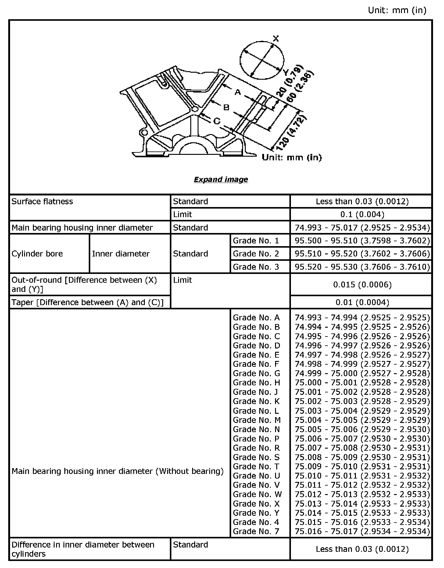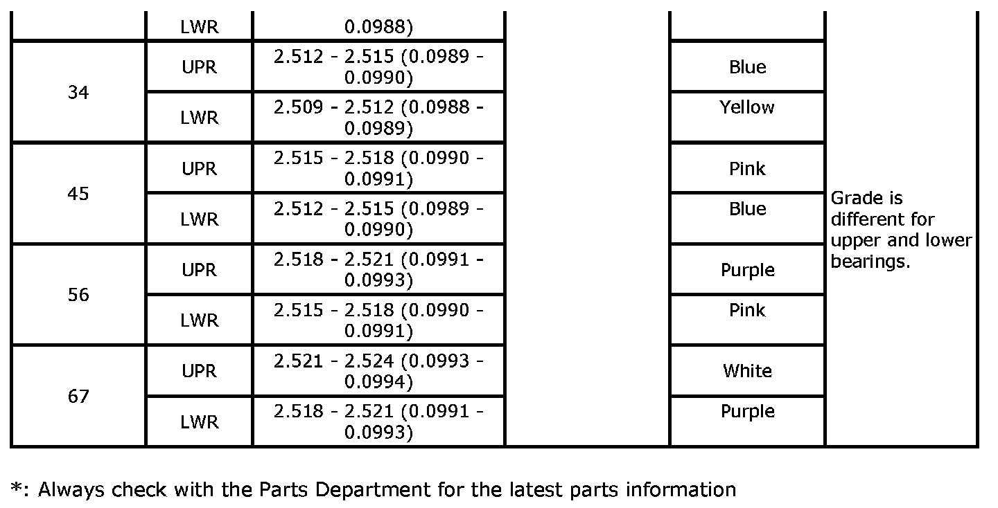 Main Bearing Grade Table (All Journals)