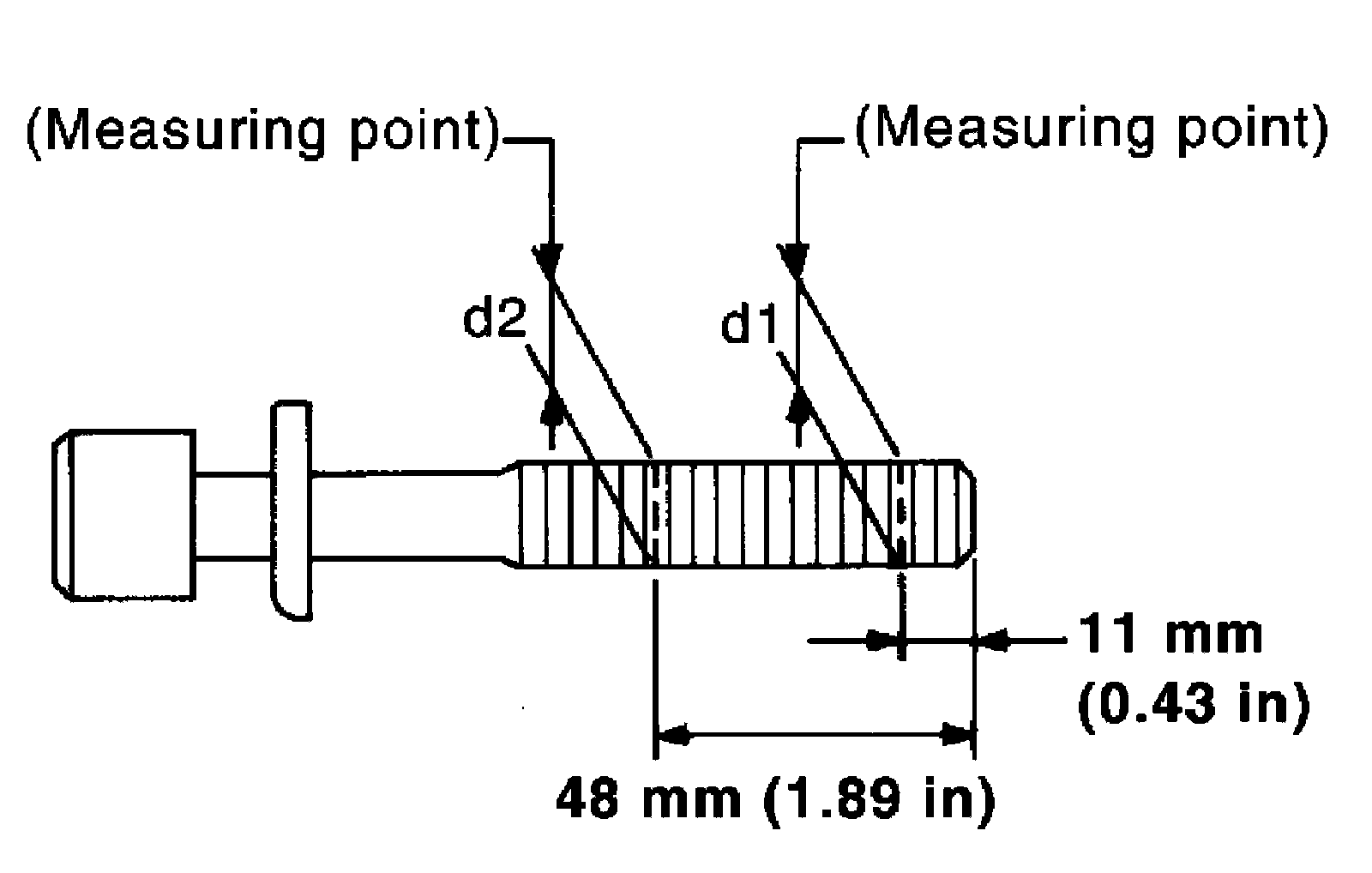 Cylinder head boltsWhenever the size difference between (d1) and (d2) exceeds the limit, replace the bolt with a new one.