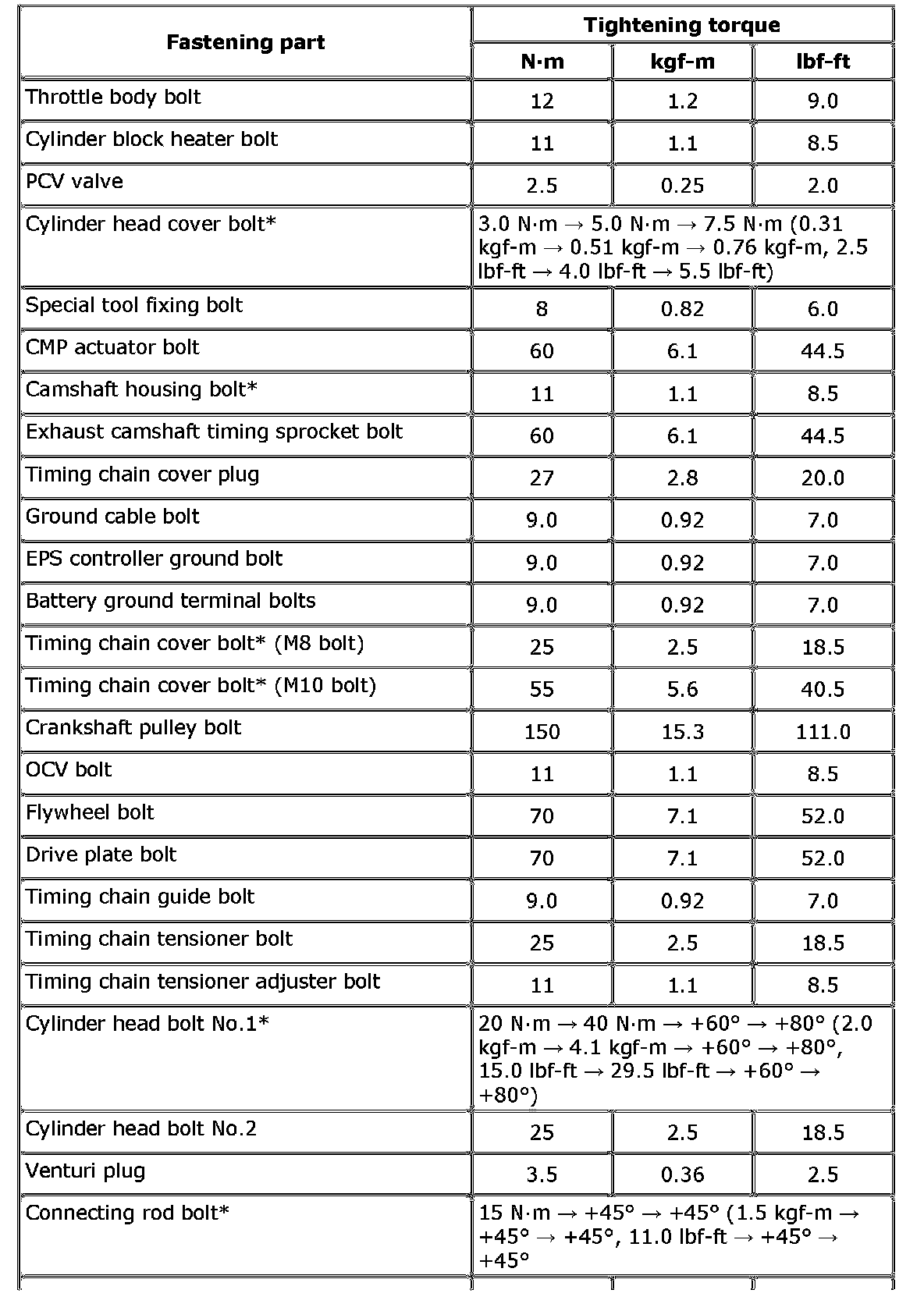 For fastener with * (asterisk) below, be sure to tighten it according to specified procedure in "Repair Instructions".