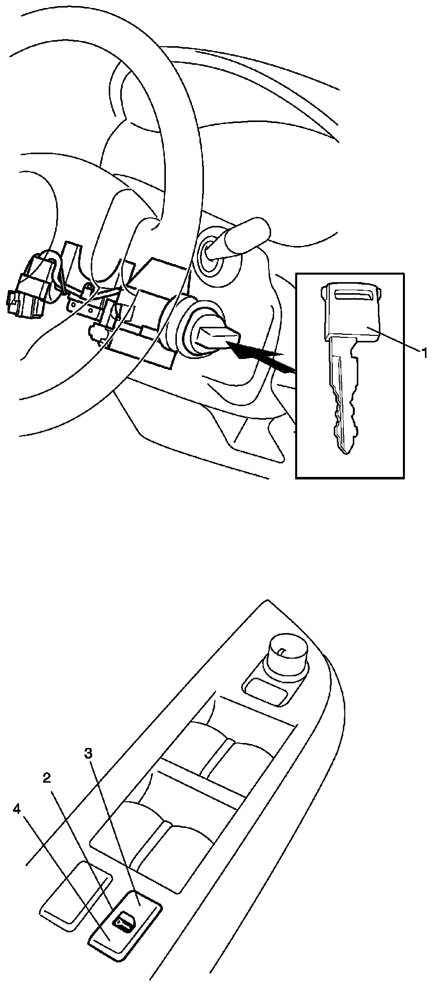 3. Insert ignition key (1) into ignition key cylinder.