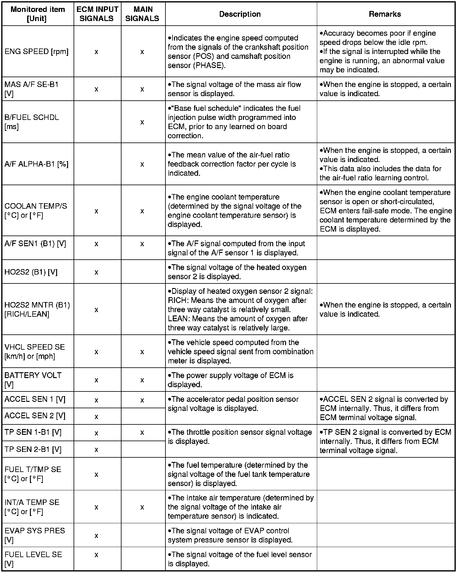 *: The following emission-related diagnostic information is cleared when the ECM memory is erased.