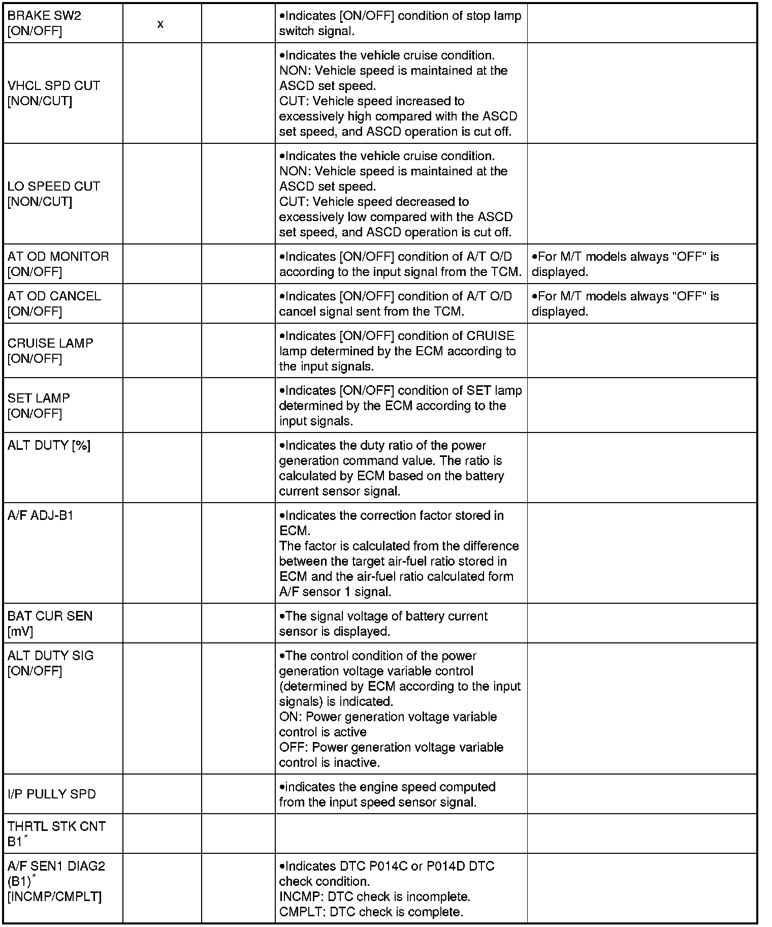 *: DTC P1442 and P1456 does not apply to R51 models but appears in DTC work support mode screens.