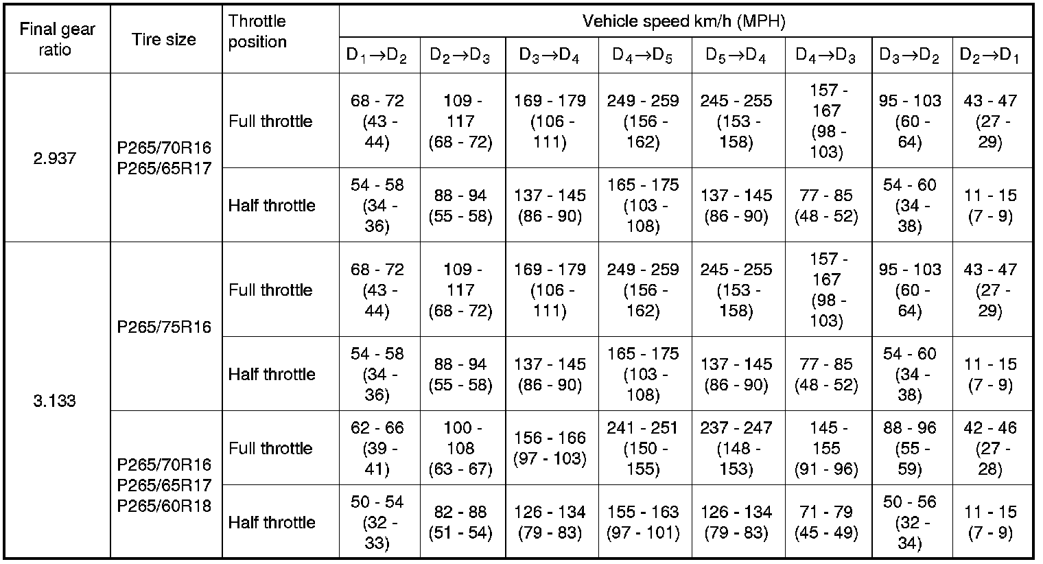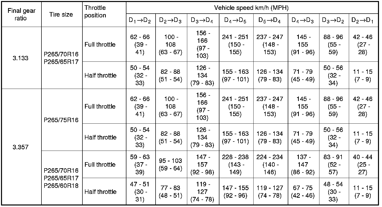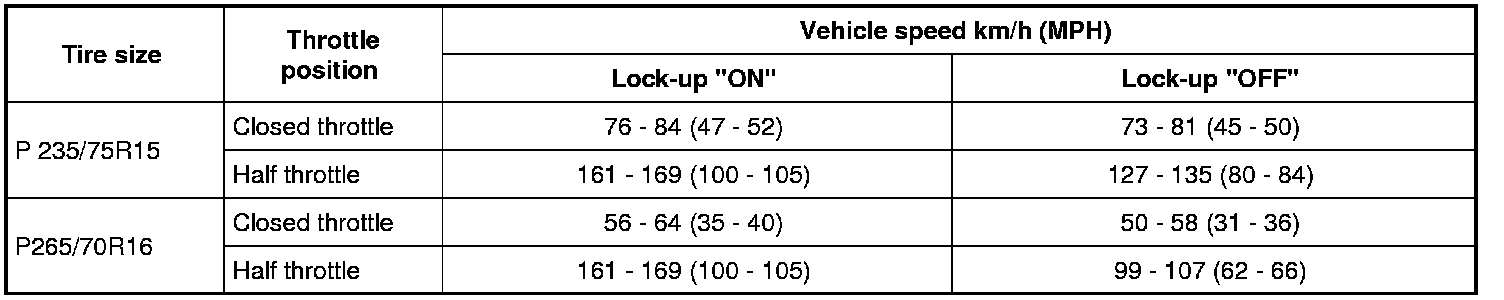 Vehicle Speed at Which Lock-up Occurs/Releases