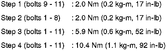 Tighten bolts of camshaft brackets in the following steps, in numerical order as shown.