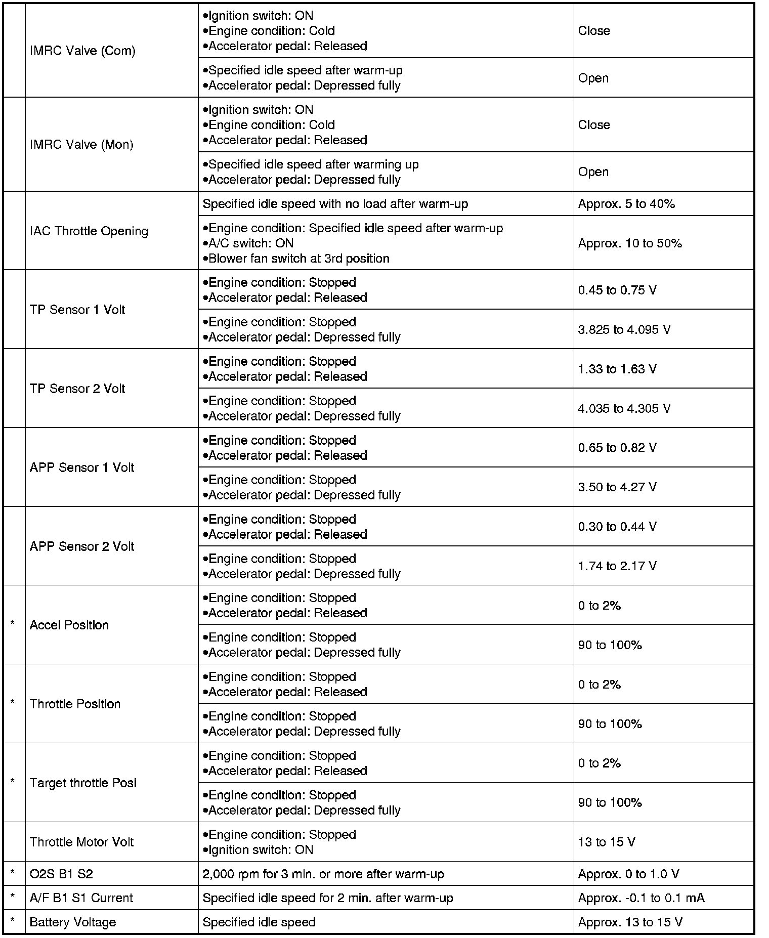 - With the generic scan tool, only star (*) marked data in the following table can be read.