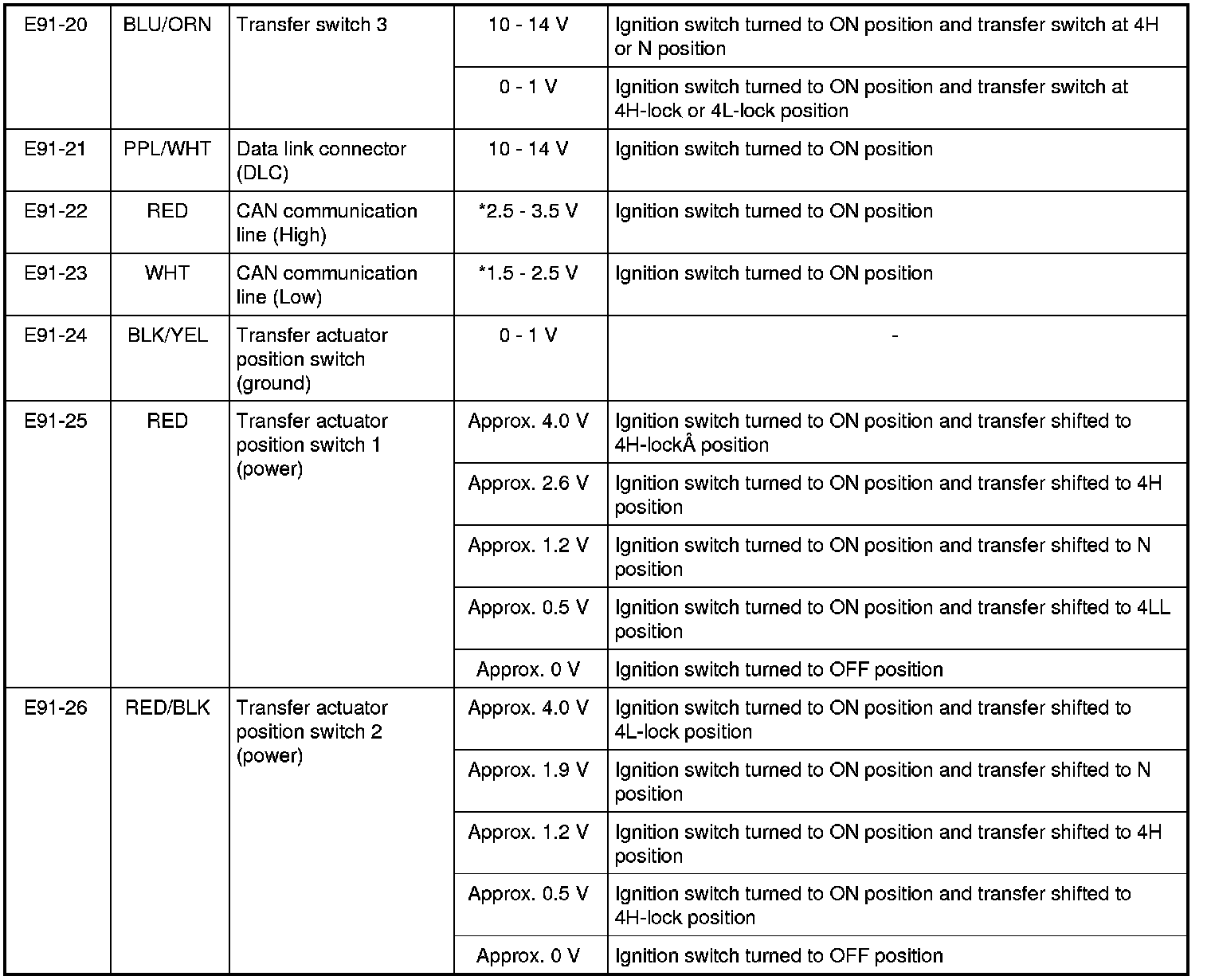 - Item with asterisk (*) in normal voltage column can be read only by oscilloscope.