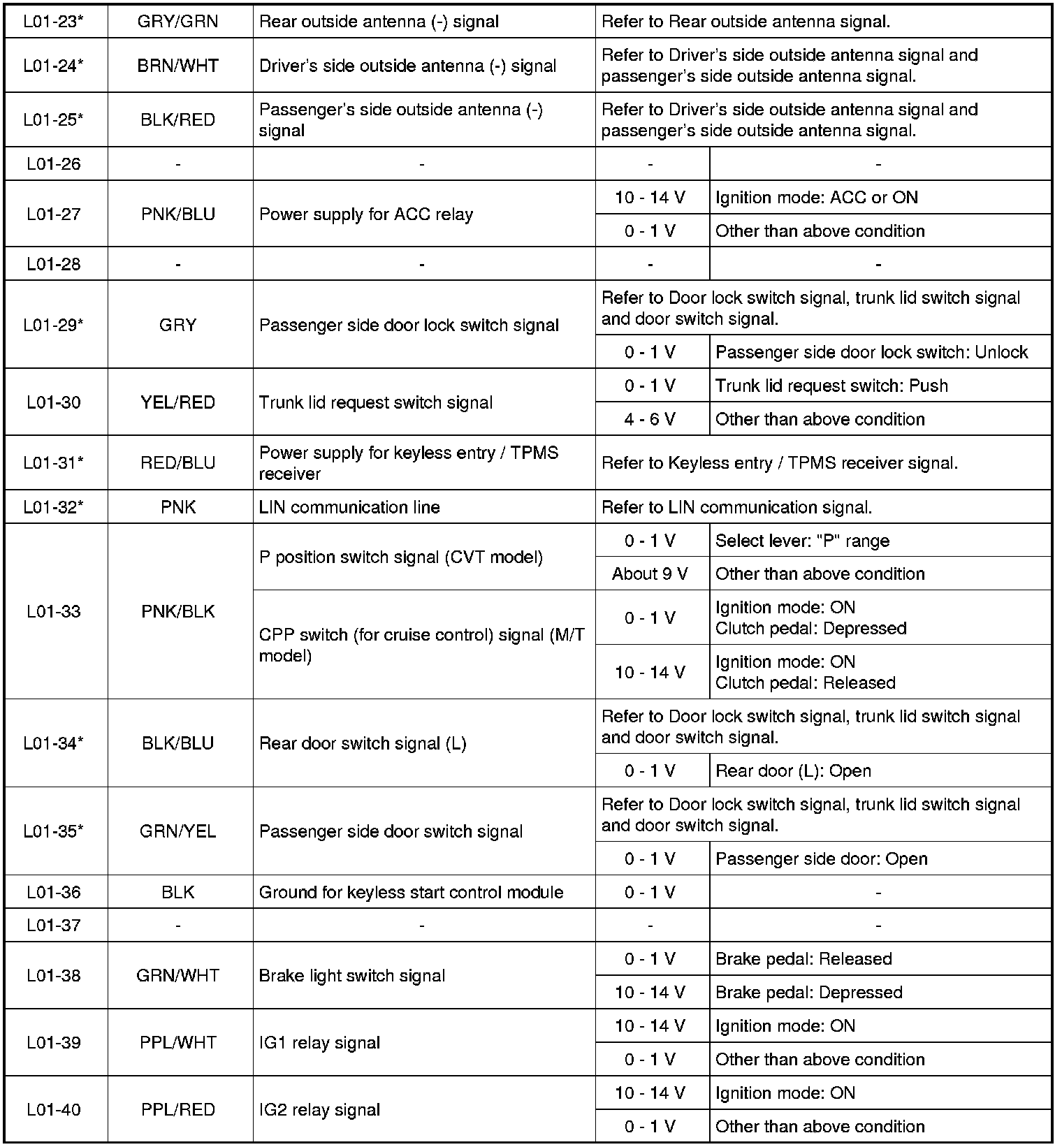 - Voltage of terminal with asterisk (*) cannot be measured by voltmeter because it is pulse signal. Check it with oscilloscope if necessary.