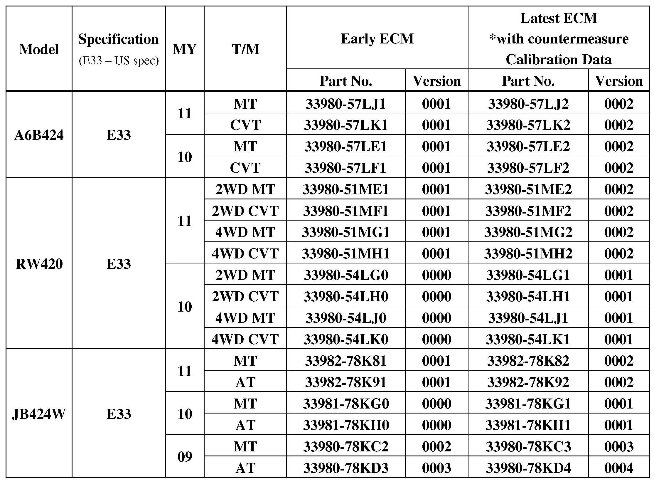 ECU Model List