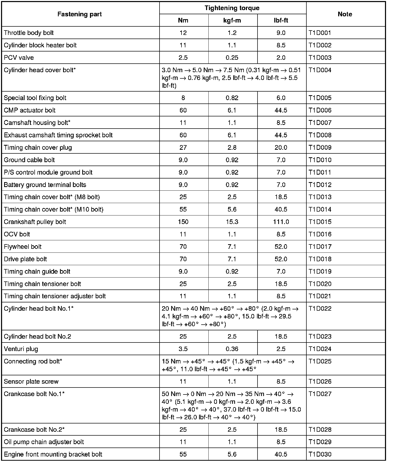 Tightening Torque Specifications