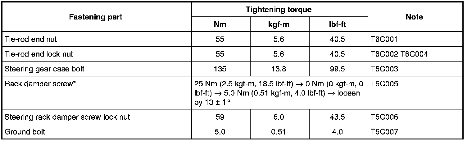 Tightening Torque Specifications
