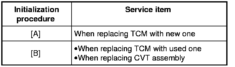 When having replaced TCM and CVT assembly at the same time according to the procedure other than the below, perform initialization procedure [B].