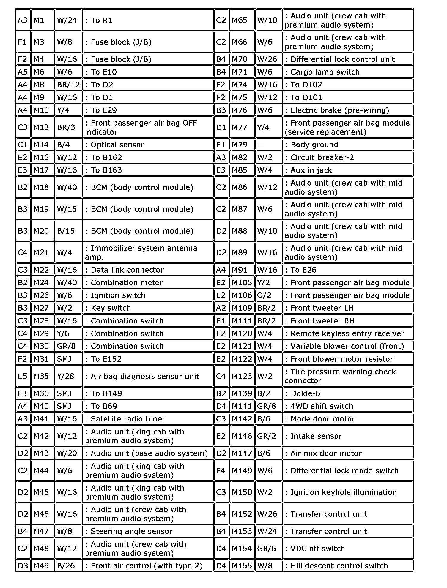 Home >> Suzuki >> 2012 >> Equator 2WD L4-2.5L >> Repair and Diagnosis >> Body and Frame >> Body Control Systems >> Body Control Module >> Locations >> How to Read Harness Layout