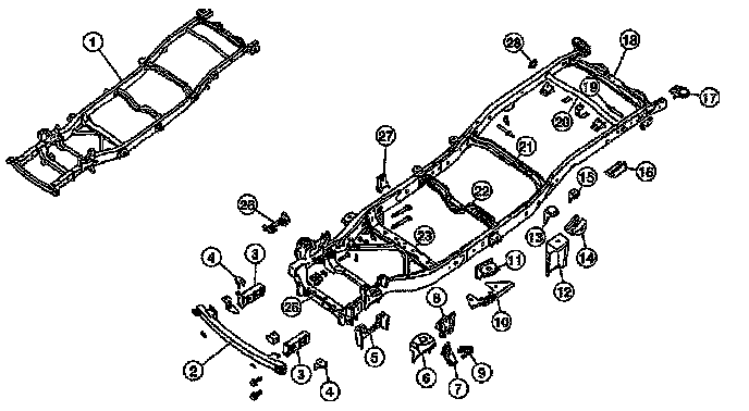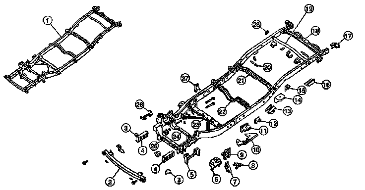 22. (2wd) Center bearing bracket assembly, (4wd) 5th crossmember assembly