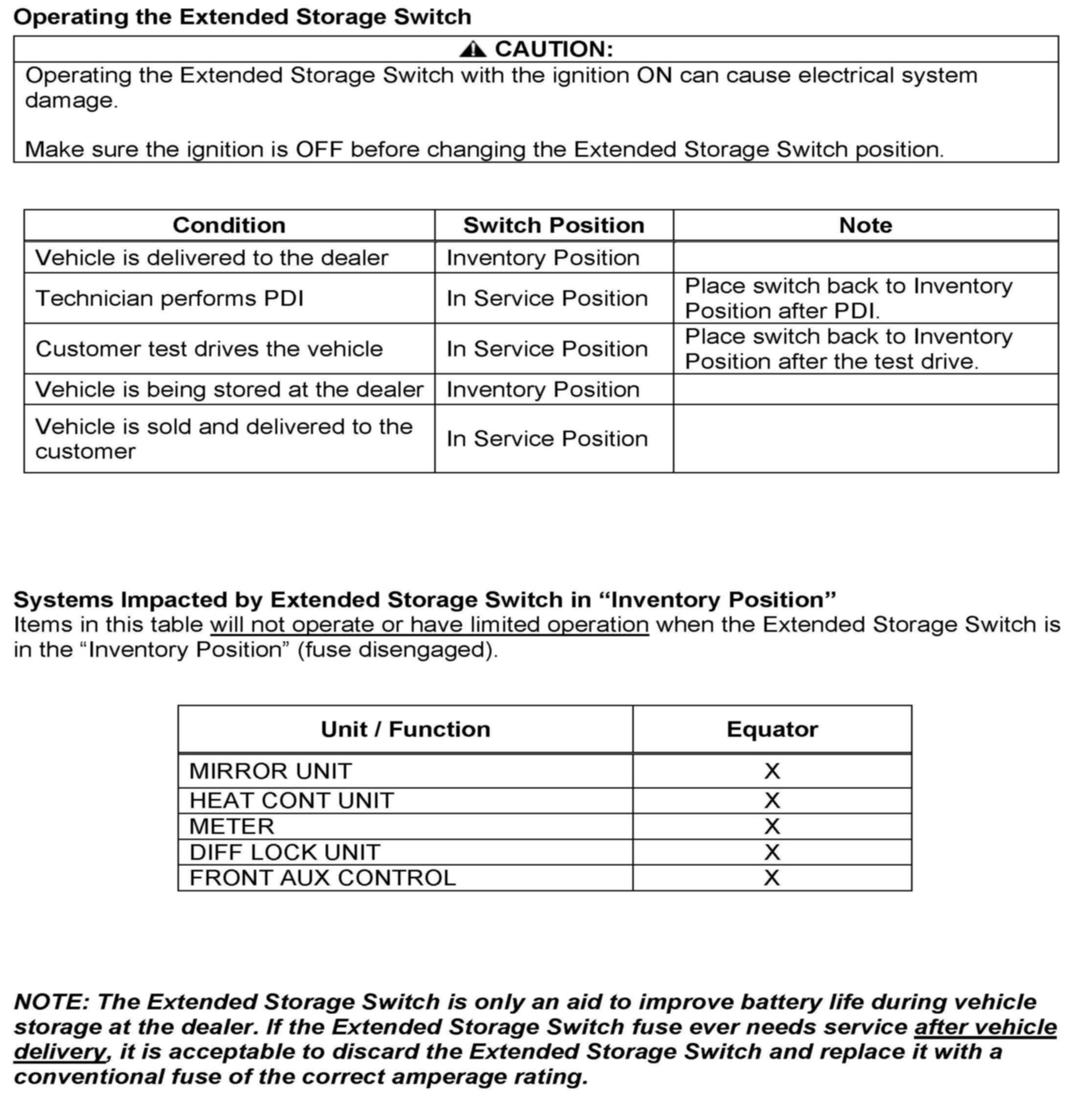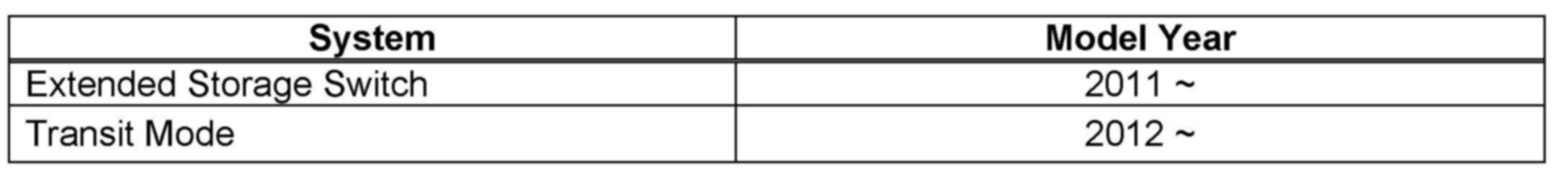 EXTENDED STORAGE SWITCH/BCM TRANSIT MODE