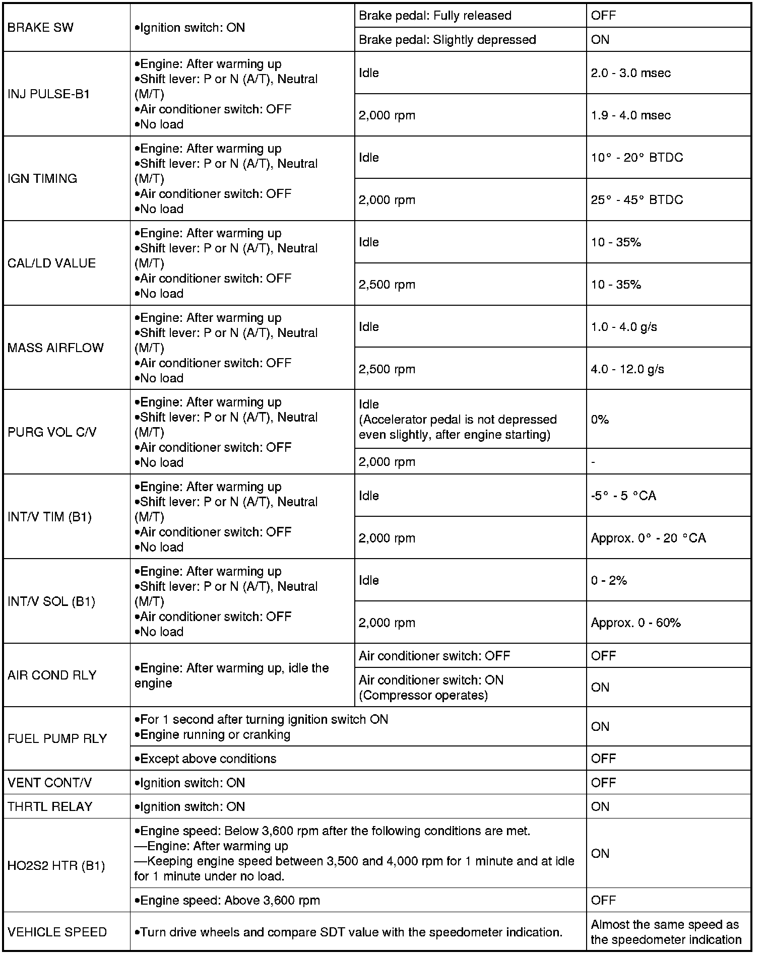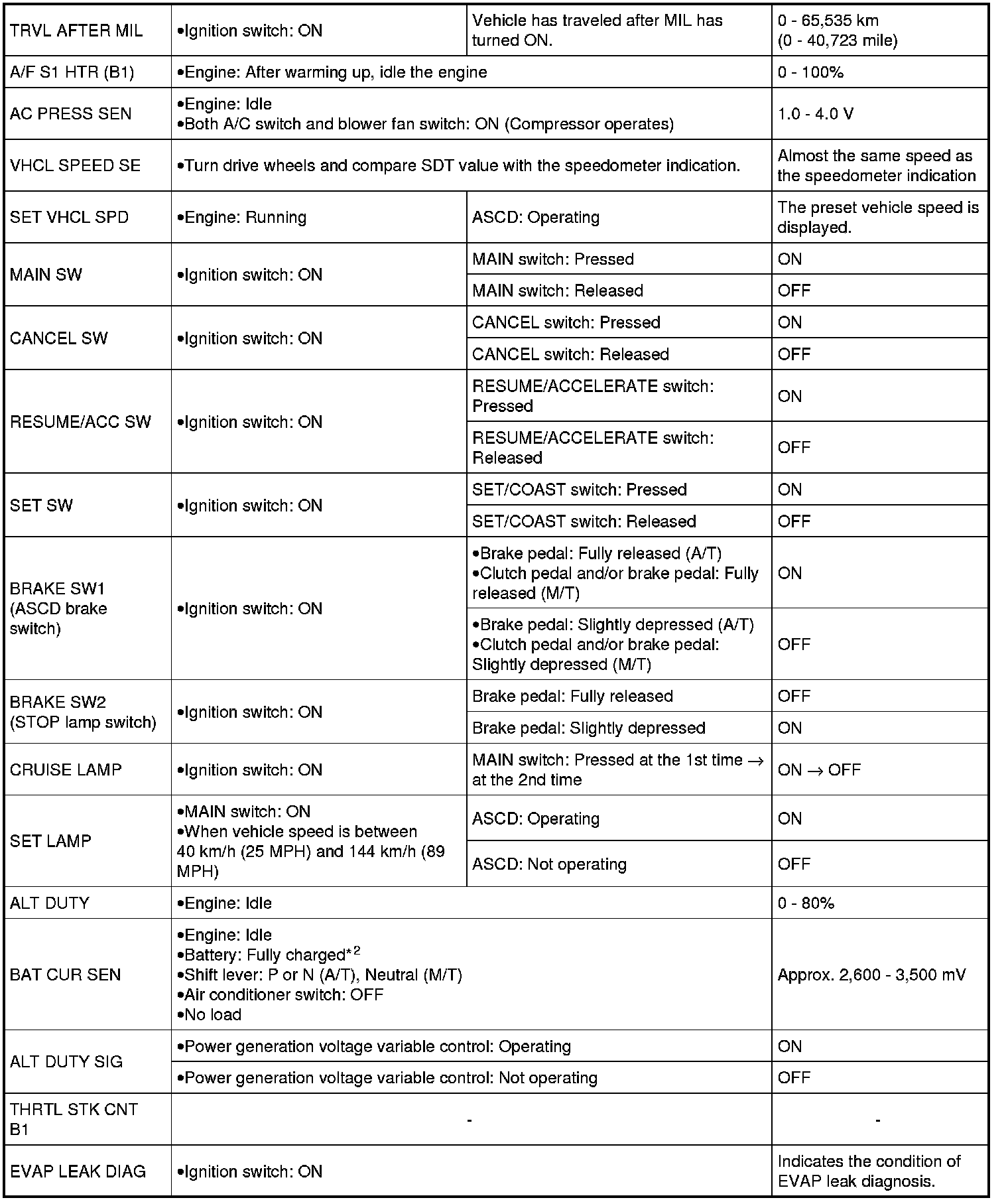 - Specification data are output/input values which are detected or supplied by the ECM at the connector.