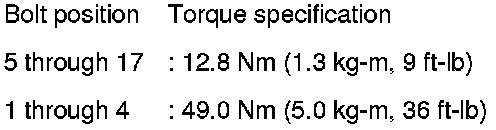 After all bolts are tightened, retighten them to the specified torque in numerical order as shown.