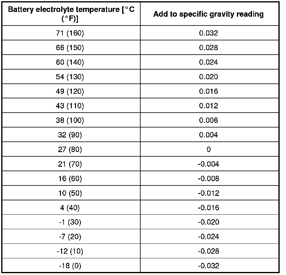 2) Use the chart below to correct your hydrometer reading according to electrolyte temperature.