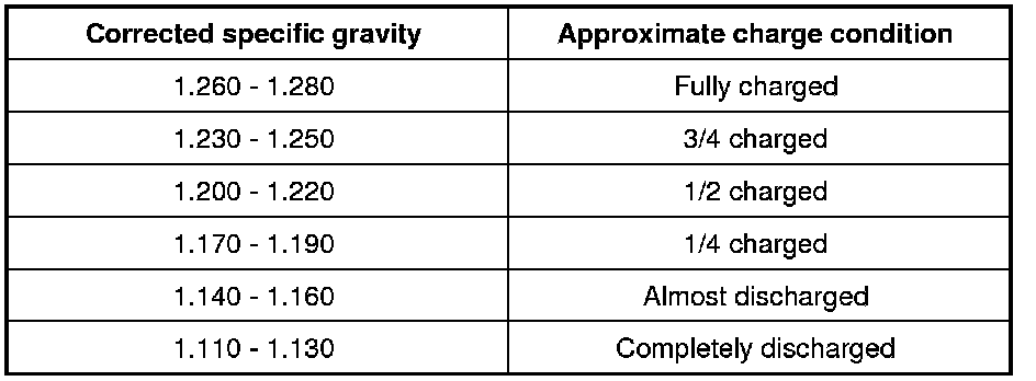 - If, after charging, the specific gravity of any two cells varies more than 0.050, the battery should be replaced.