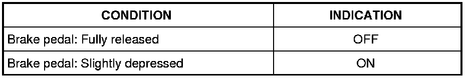 When the brake pedal is depressed, ASCD brake switch is turned OFF and stop lamp switch is turned ON. ECM detects the state of the brake pedal by two types of input (ON/OFF signal).