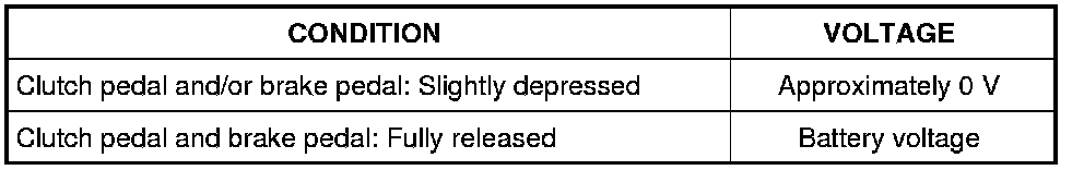 4 Check voltage between ASCD clutch switch terminal 1 and ground under the following conditions with SDT or tester.