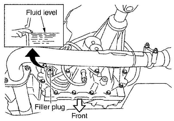 3) Install the filler plug with a new gasket to the transfer. Tighten to the specified torque. Refer to [Transfer Assembly: Exploded View] Exploded View.