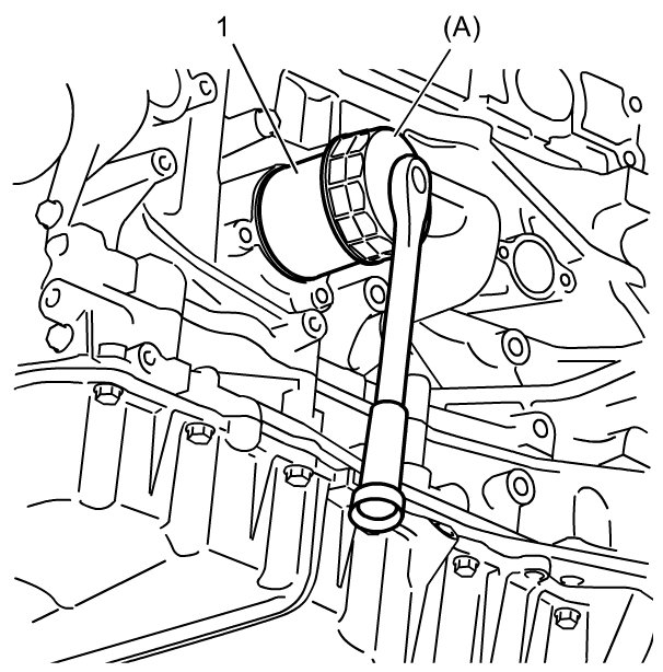 8) Tighten oil filter (1) 3/4 turn from the point of contact with filter mounting surface using an oil filter wrench.