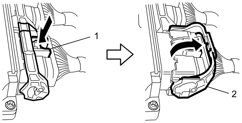 3) Remove ECM (1) and cover from bracket by removing their mounting bolts (2).