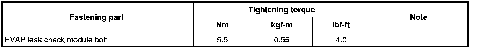 Tightening Torque Specifications