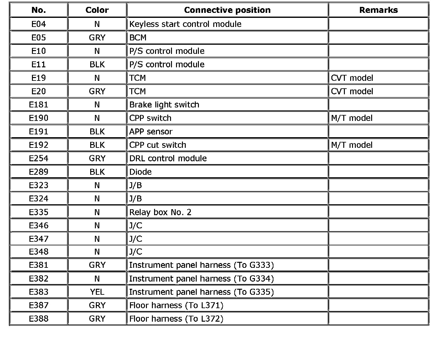 E: Main Harness