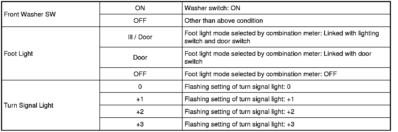 - For "Ignition mode" described in the following table, it means power supply mode in keyless push start system.