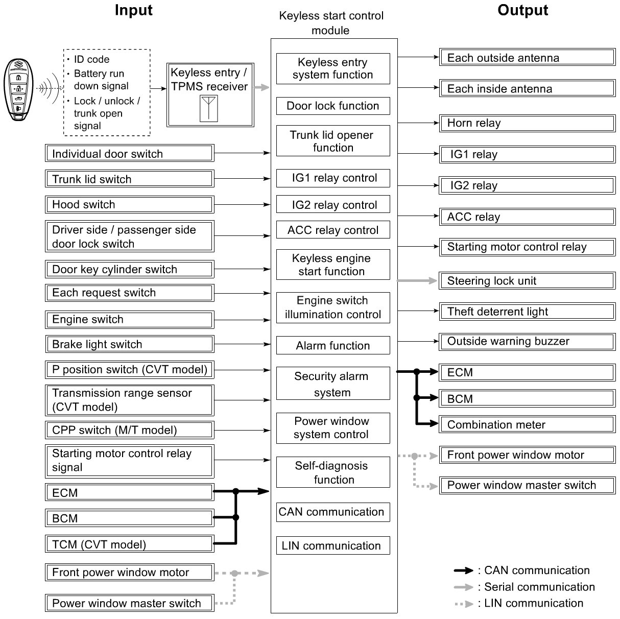Keyless Start Control Module Input / Output Diagram