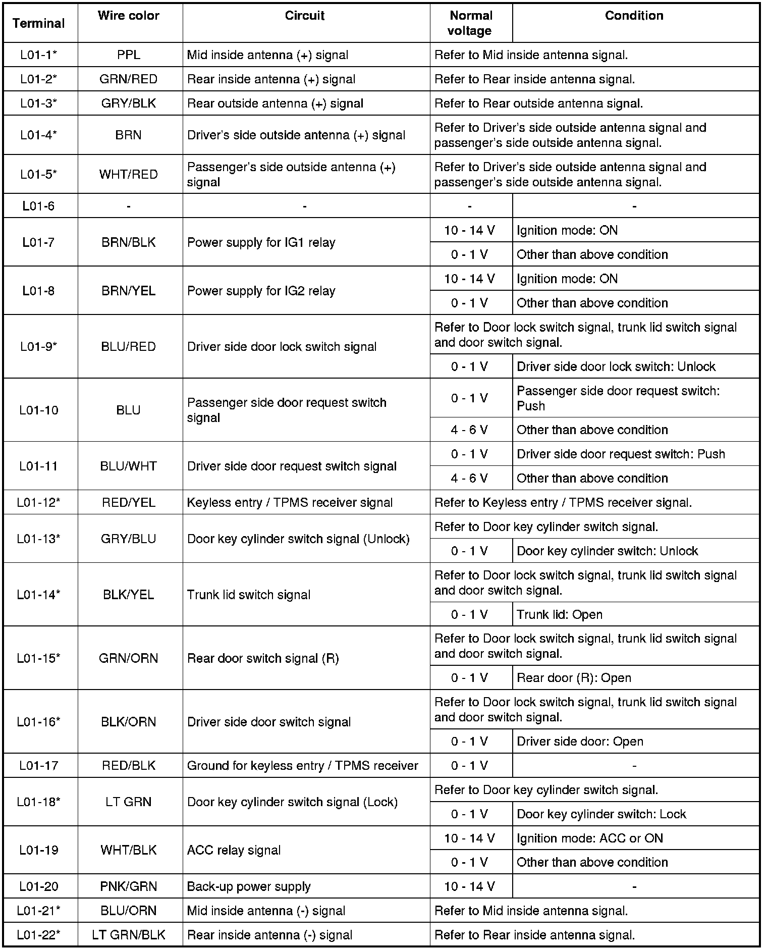 - Voltage of terminal with asterisk (*) cannot be measured by voltmeter because it is pulse signal. Check it with oscilloscope if necessary.