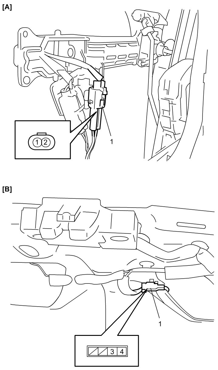2) Disconnect request switch connector (1).