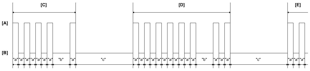Input signal/error codes are indicated by the number of times the buzzer beeps. The following example shows beep patterns for input signal code "41" and error code "62".