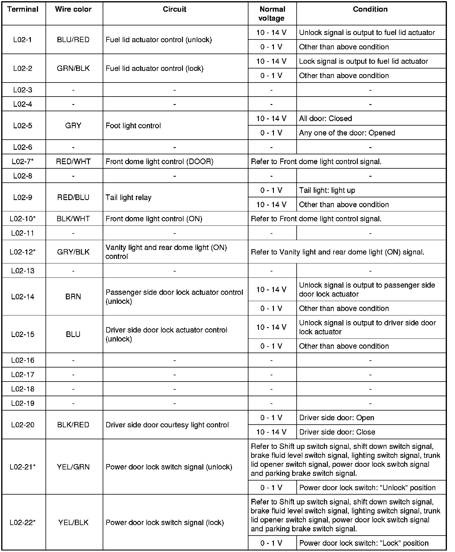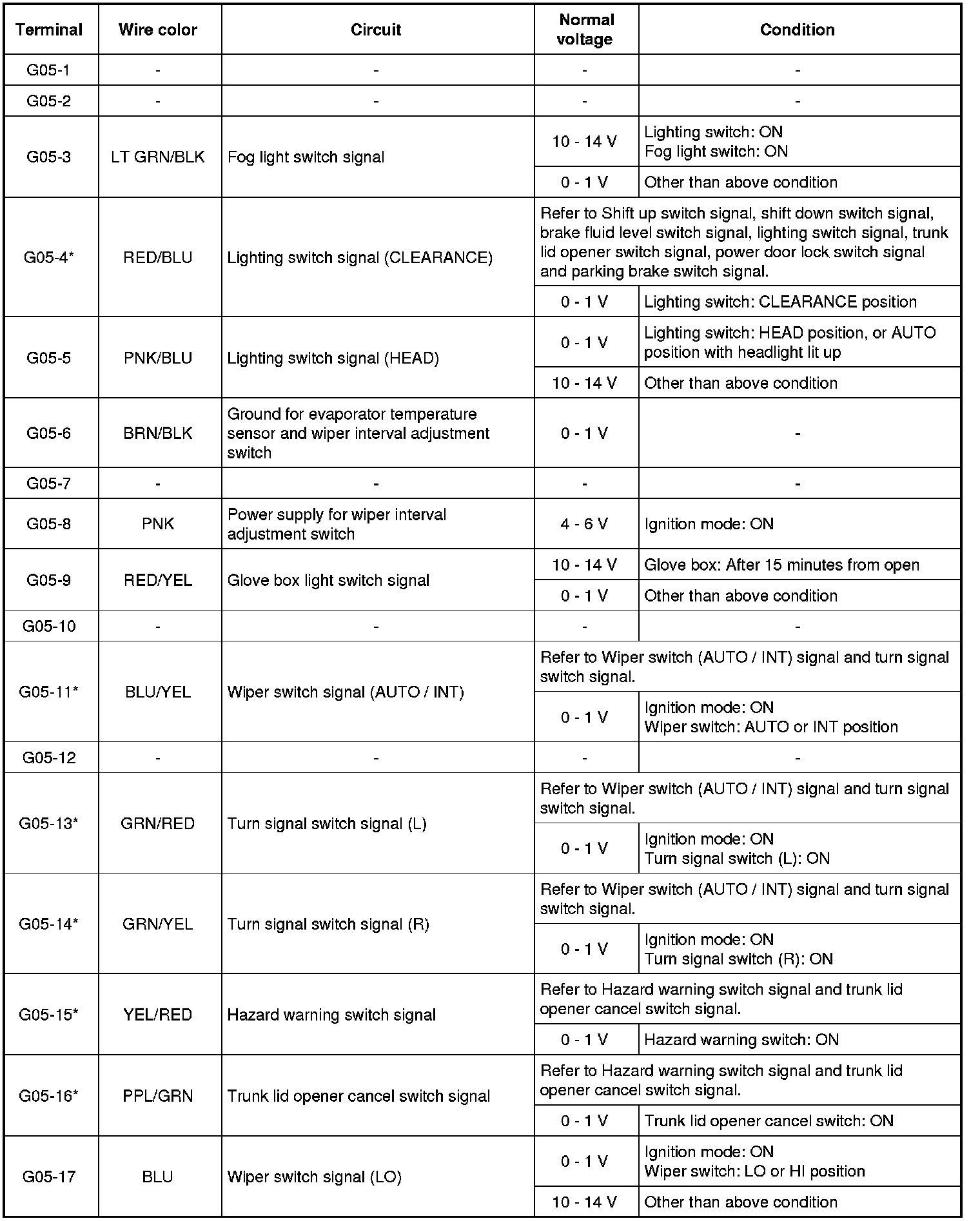 - The voltage of terminal with asterisk (*) cannot be measured by voltmeter because it is pulse signal. Check it with oscilloscope if necessary.