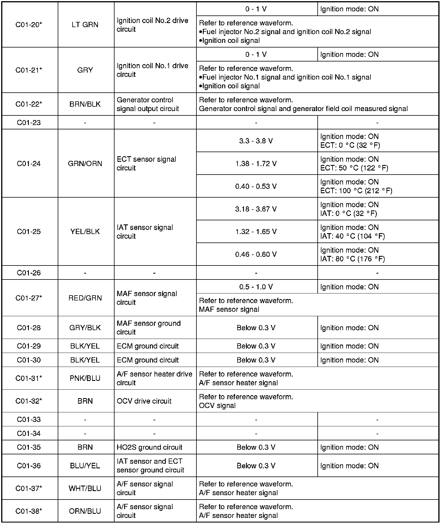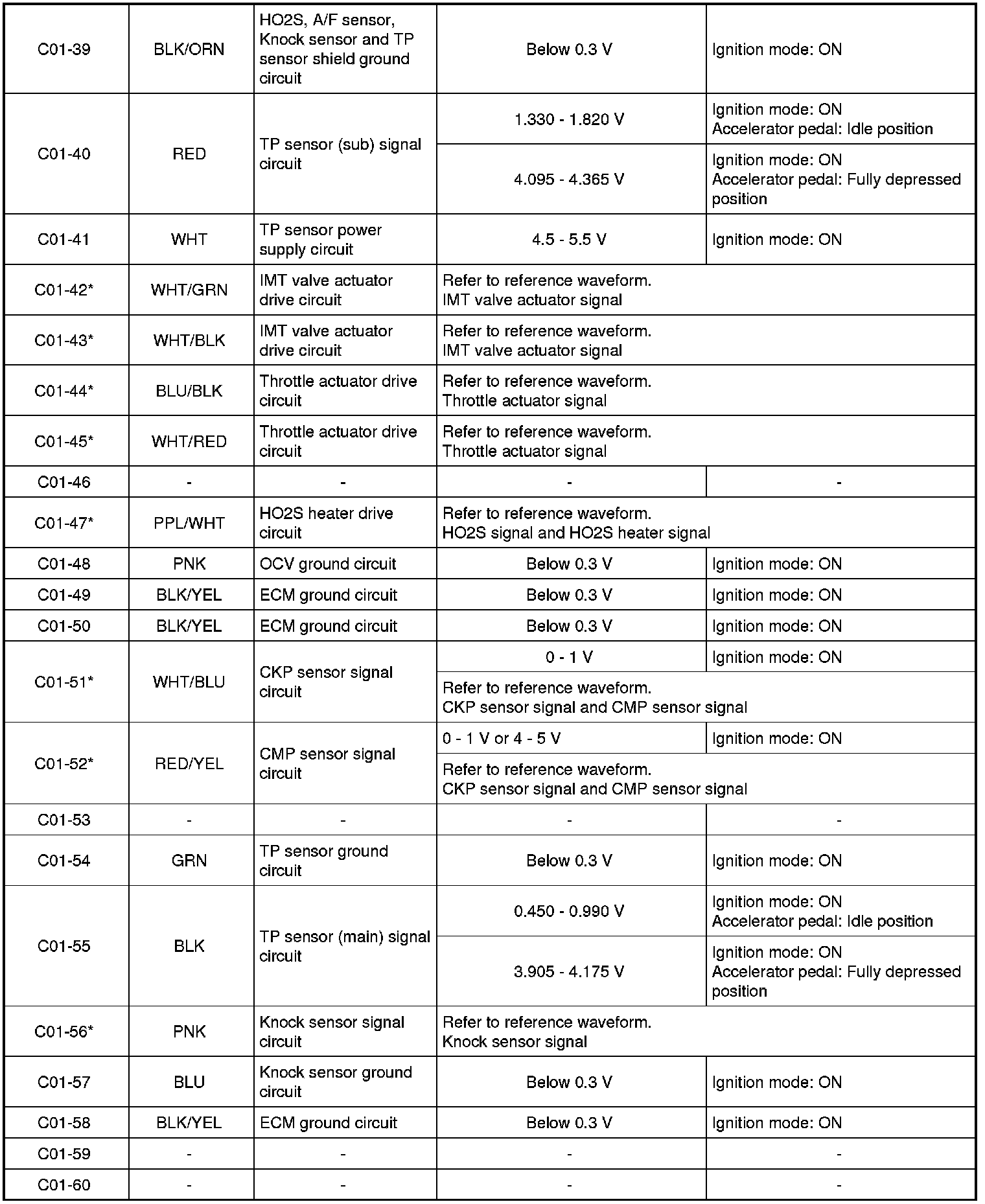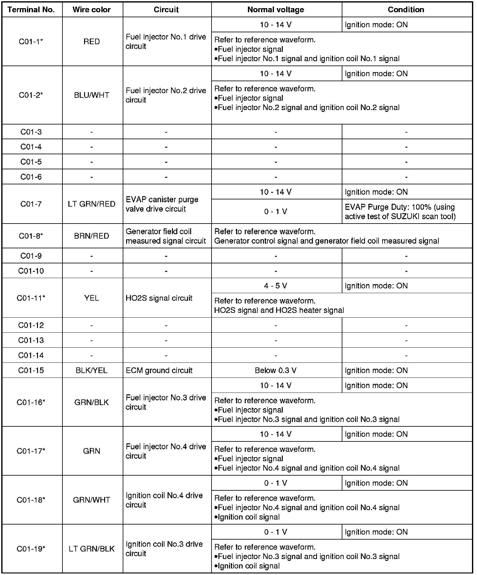 - Voltage with asterisk (*) cannot be measured with voltmeter because it is pulse signal. Use oscilloscope for its check if necessary.