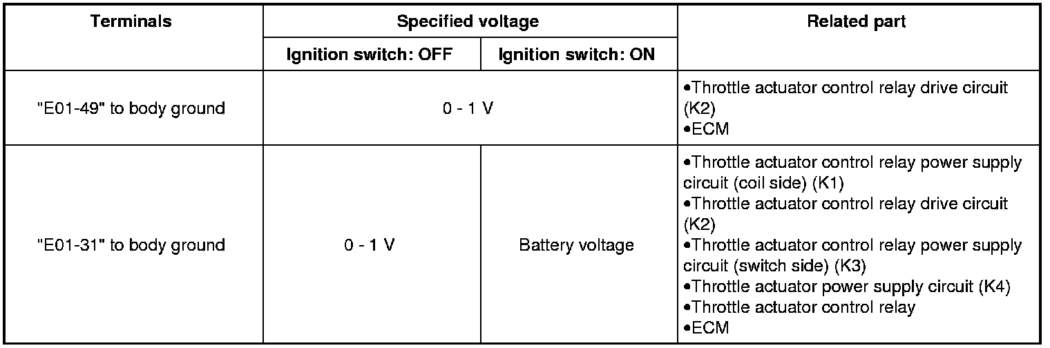 e) Measure voltage between each terminal of ECM connector and body ground in the following table.