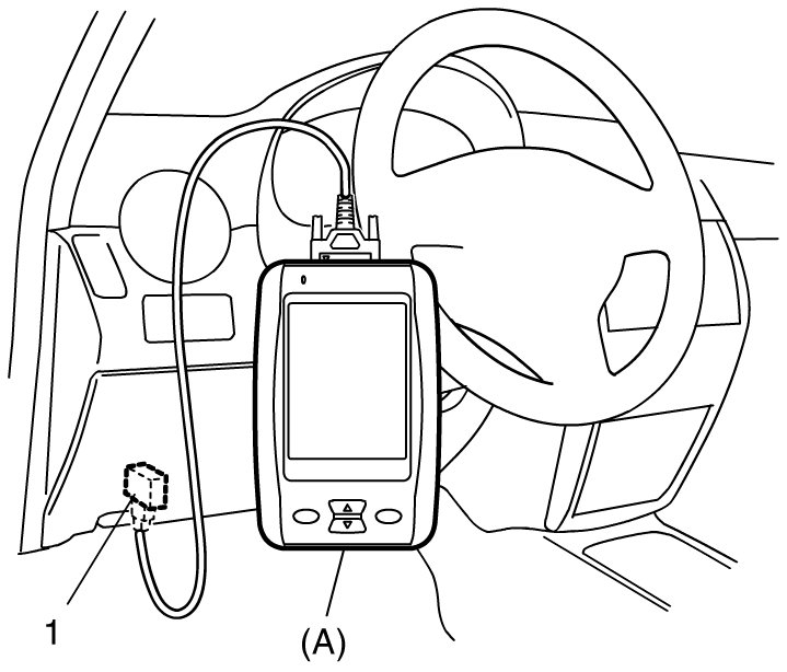 1) Connect SUZUKI scan tool to data link connector (DLC) (1) located on under side of instrument panel at driver's seat side